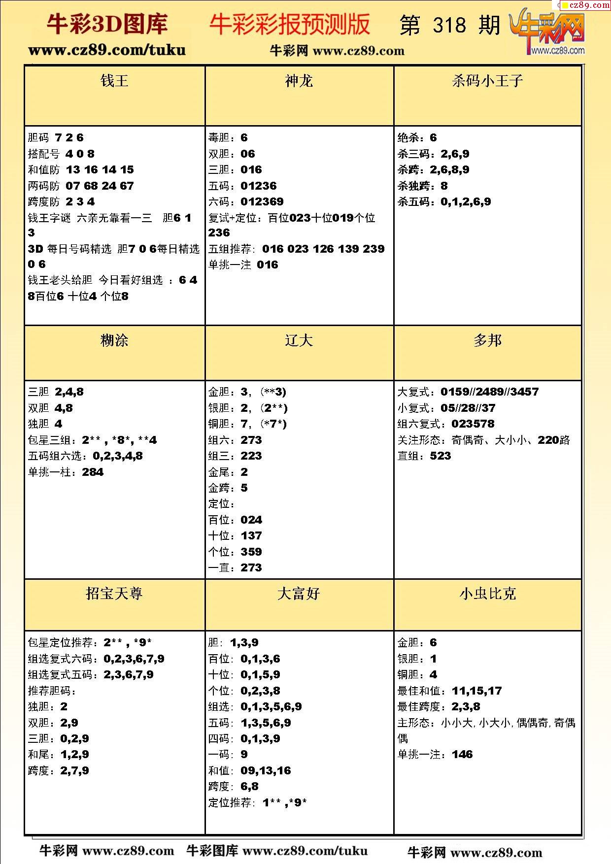 牛彩版3D预测彩报图25年318期打印版